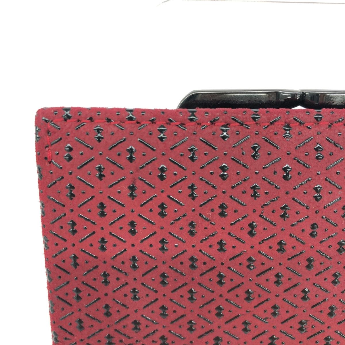二つ折りがま口財布 瓢箪/赤地鹿革黒漆 がま口 |