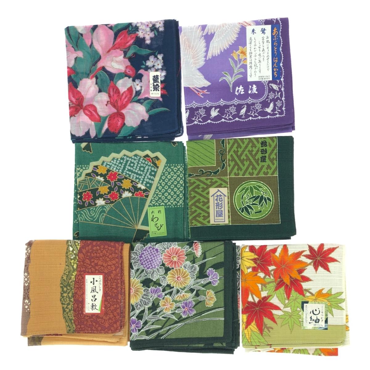 和柄ハンカチ/小風呂敷/7枚セット 花柄/紅葉/唐草/綿 綿 |