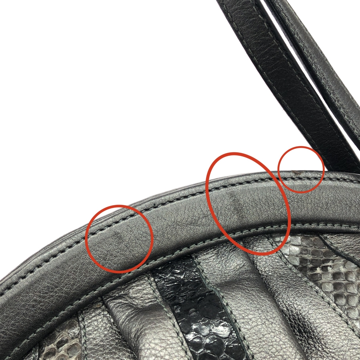 型崩れ 【外側】スレ- 【内側】汚れ ※スレ傷や汚れがある場合はその一部分のみ撮影を行っております。 画像に写っていない箇所にも同じようなスレ傷や汚れがある場合がございます。 |