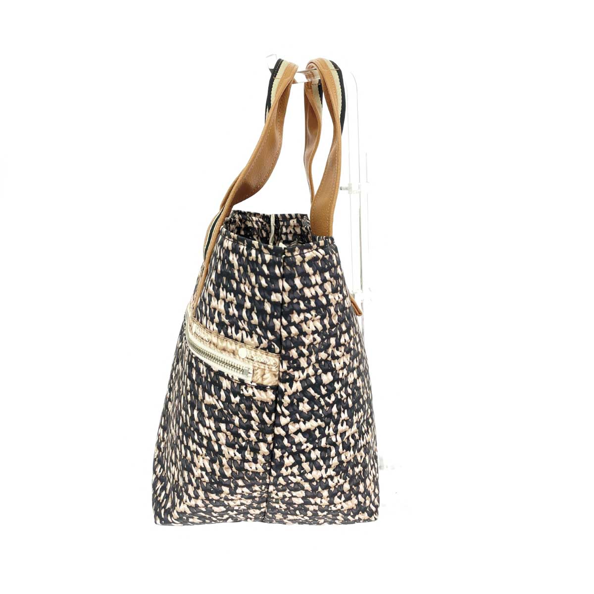 トートバッグ ナイロン 編み込みプリント柄 中綿 |