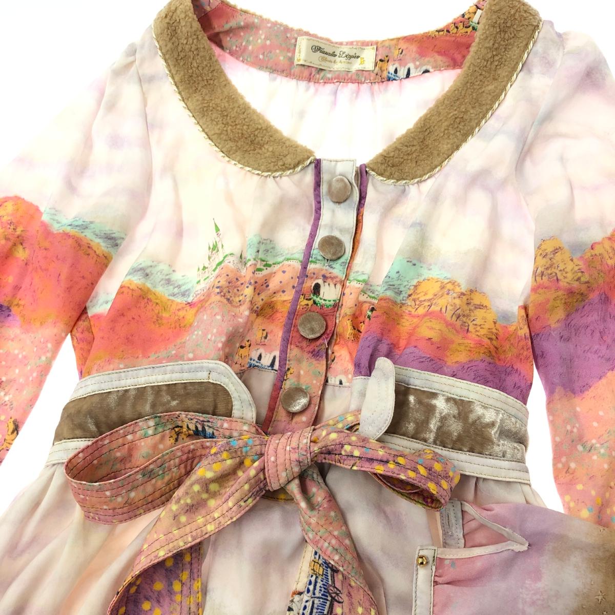 長袖ワンピース リボンベルト/襟ボア/ベロア、シルク使用 ※素材は画像の素材タグをご確認ください。 画像にない場合は素材タグが無く素材不明となります。 |