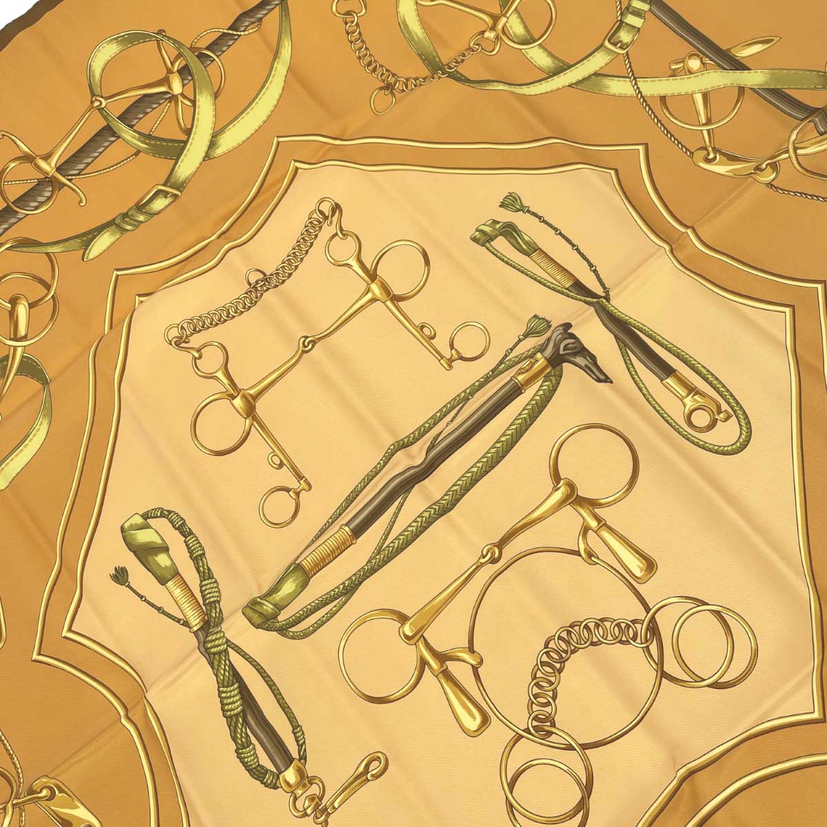 スカーフ ヴィンテージ 馬具柄/ホースビット/ステッキ/ シルク100% |