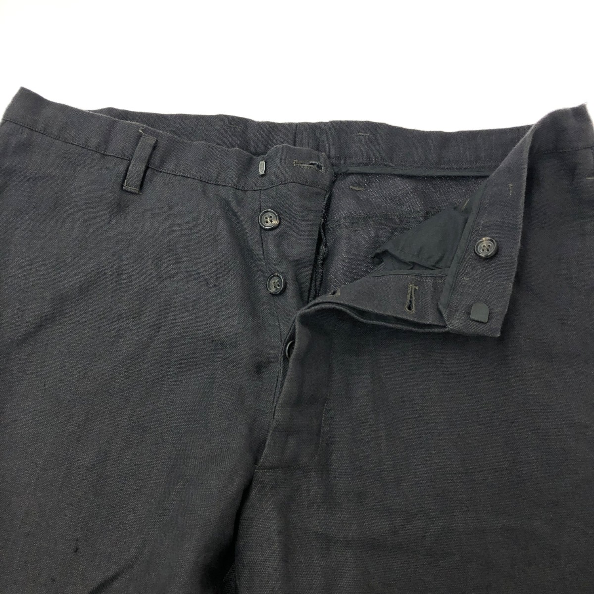 リネントラウザーズパンツ ボタンフライ 麻 ※素材は画像の素材タグをご確認ください。 画像にない場合は素材タグが無く素材不明となります。 |