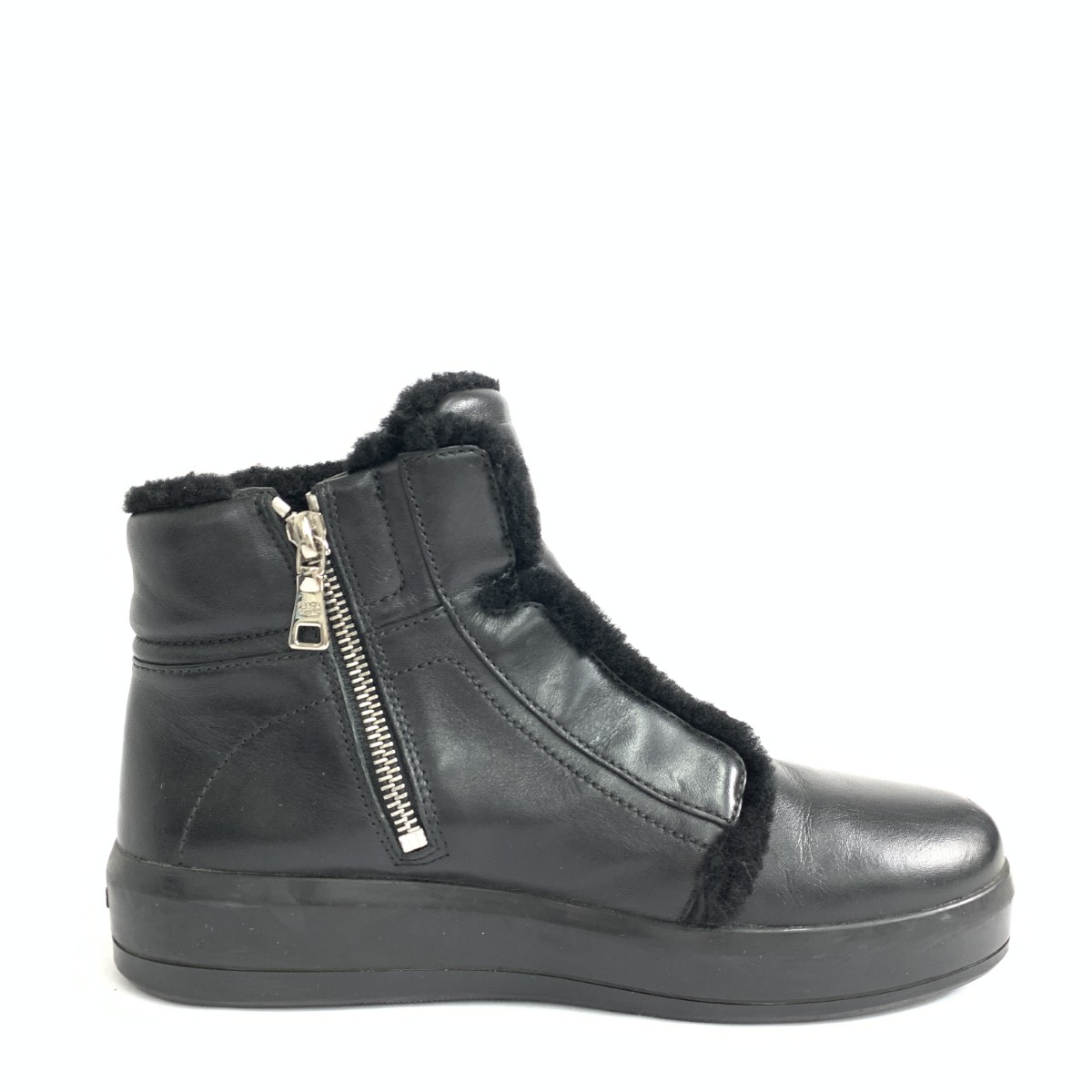 ハイカットレザーシューズ サイドジップ/ムートン |