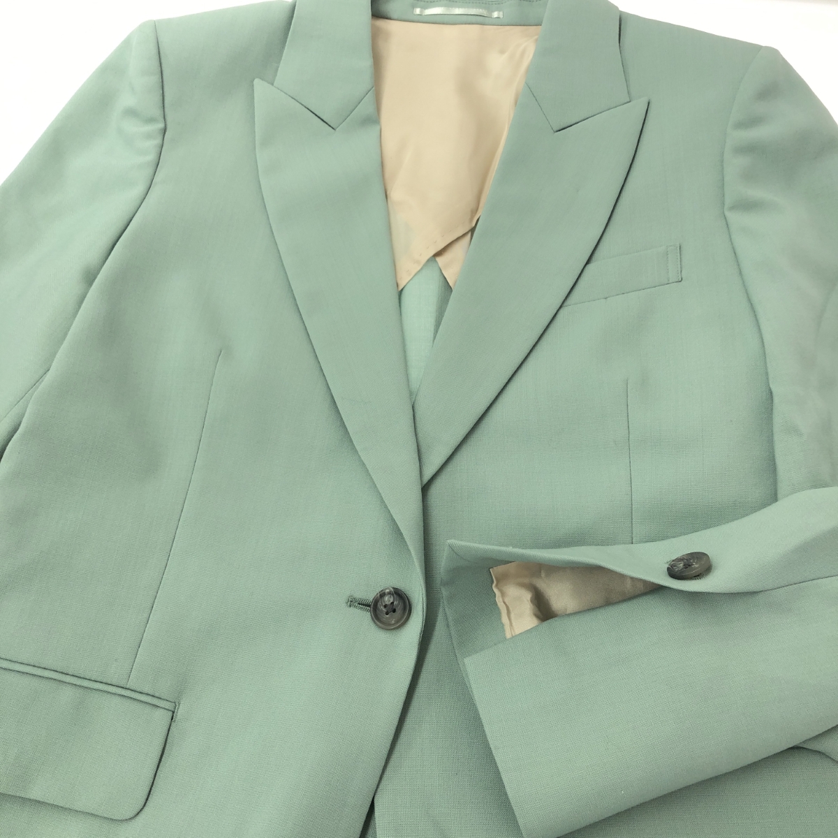 テーラードジャケット シングル/1B/裏地総柄/背抜き ※素材は画像の素材タグをご確認ください。 画像にない場合は素材タグが無く素材不明となります。 |