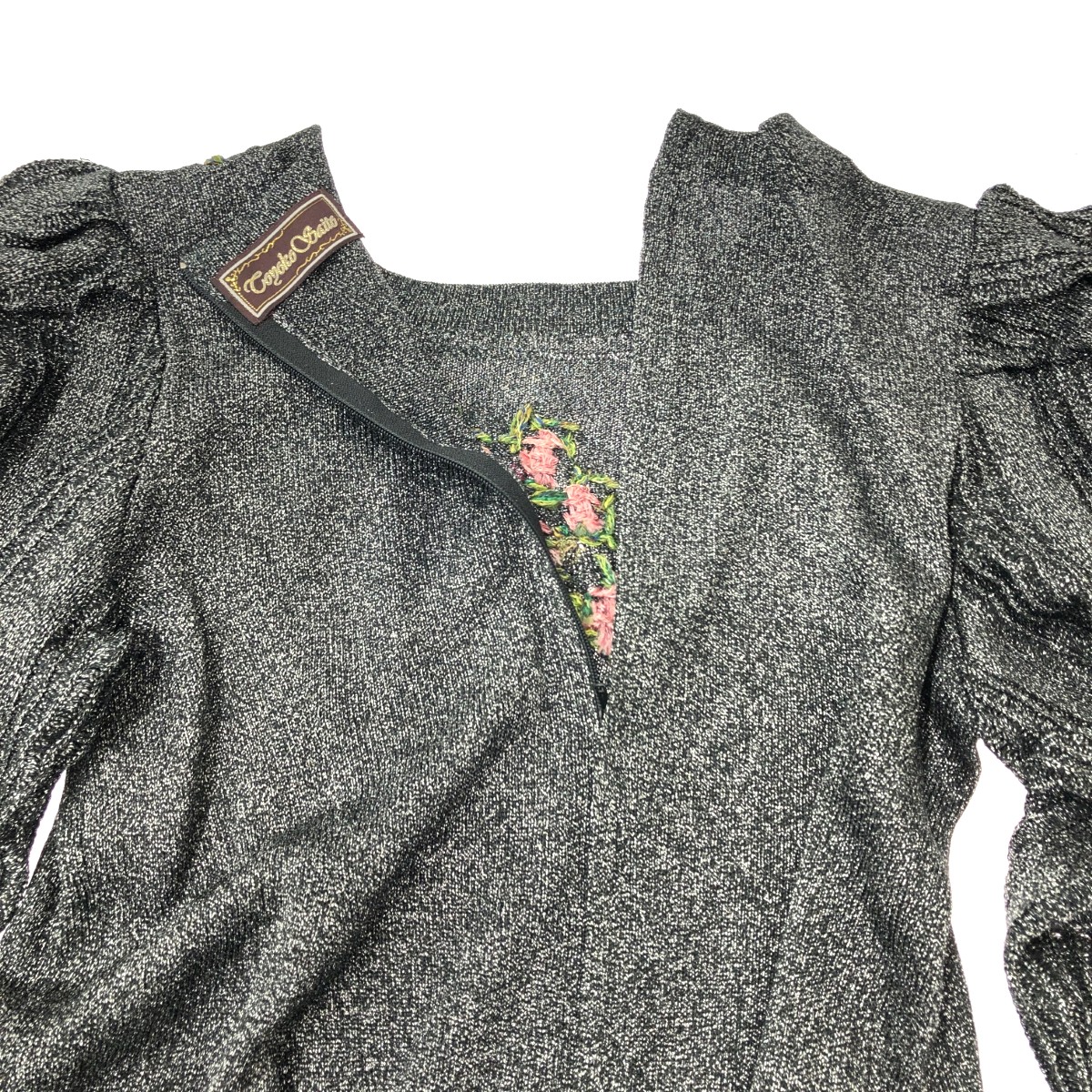 ブーケ刺繍ワンピース ラメ/ニット/ロング丈 ※素材は画像の素材タグをご確認ください。 画像にない場合は素材タグが無く素材不明となります。 |