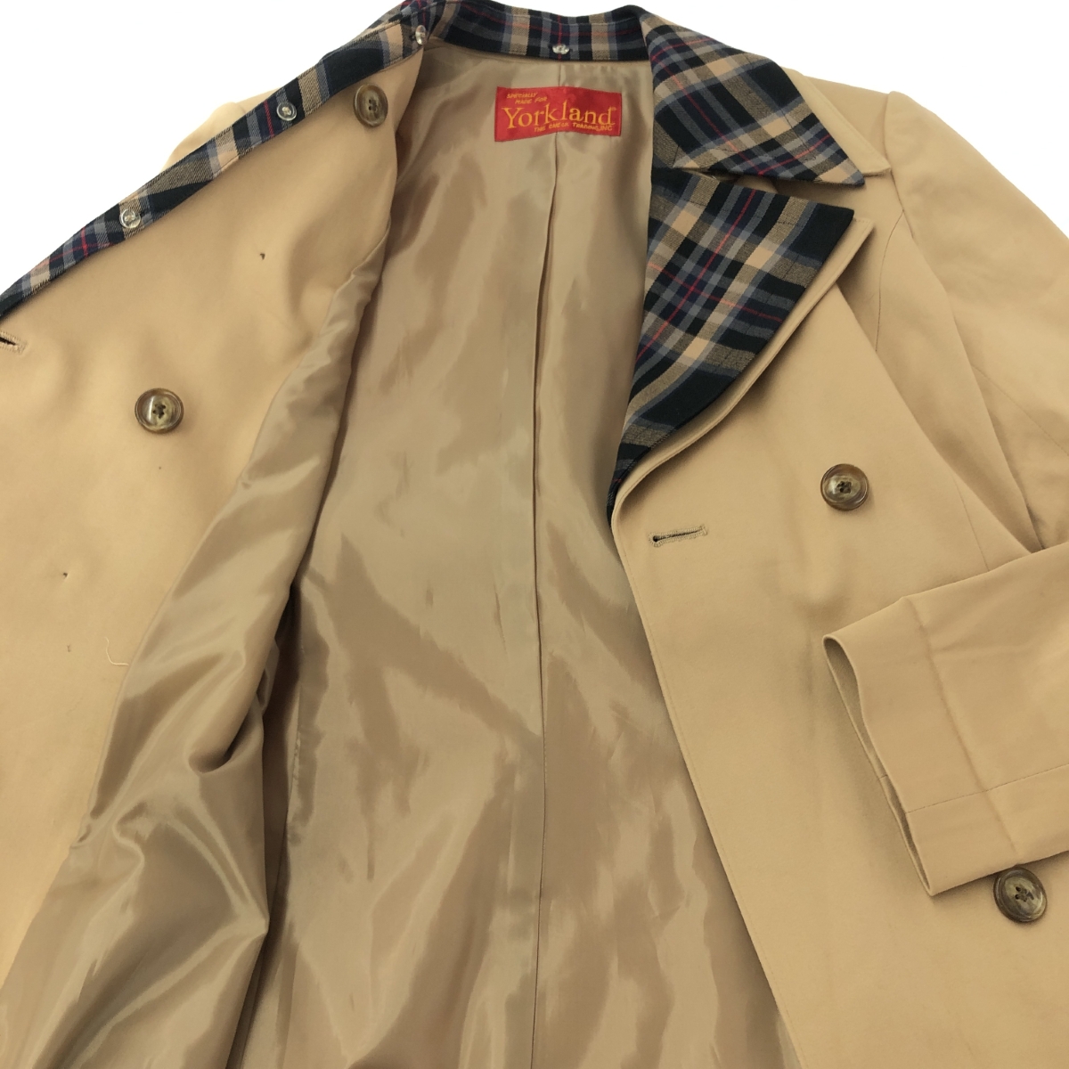 トレンチコート 襟取り外し可 コットン混 ※素材は画像の素材タグをご確認ください。 画像にない場合は素材タグが無く素材不明となります。 |