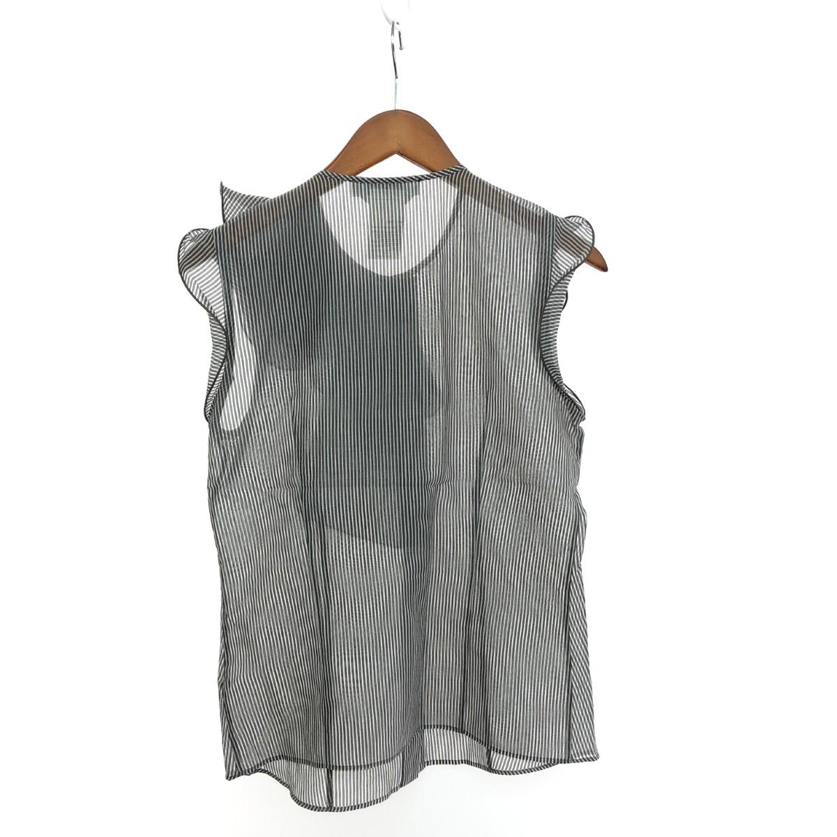 ノースリーブフリルブラウス シルクコットン/ストライプ ※素材は画像の素材タグをご確認ください。 画像にない場合は素材タグが無く素材不明となります。 |