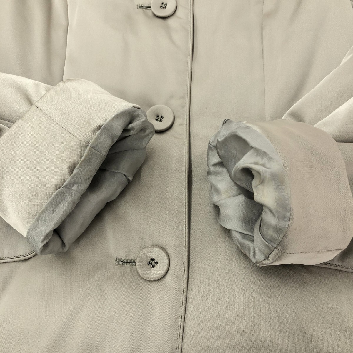 袖口や前身頃、脇に汚れあり - ※スレ傷や汚れがある場合はその一部分のみ撮影を行っております。 画像に写っていない箇所にも同じようなスレ傷や汚れがある場合がございます。 |