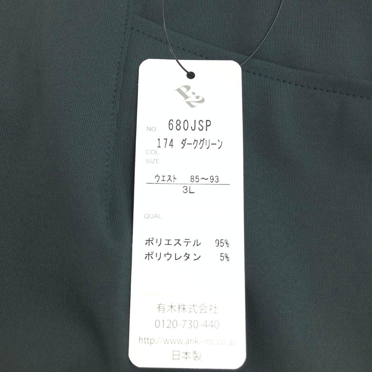 ストレッチパンツ 有木/3L/ダークグリーン ※素材は画像の素材タグをご確認ください。 画像にない場合は素材タグが無く素材不明となります。 |