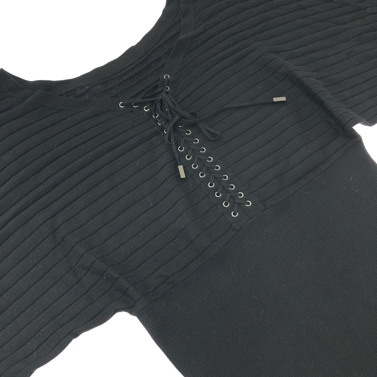 長袖ニット フレアスリーブ/シルクカシミヤ混/ ※素材は画像の素材タグをご確認ください。 画像にない場合は素材タグが無く素材不明となります。 |