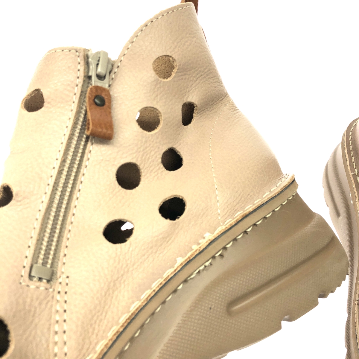 ショートブーツ ダブルジップ/パンチング/レザー |
