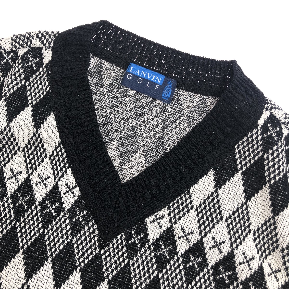 ニットベスト 総柄/ゴルフ/Vネック ※素材は画像の素材タグをご確認ください。 画像にない場合は素材タグが無く素材不明となります。 |