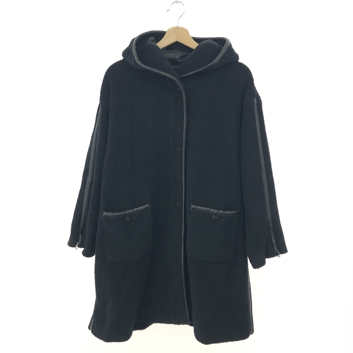 ロングコート ボア/飾り釦/フード ウール、ナイロン混 ※素材は画像の素材タグをご確認ください。 画像にない場合は素材タグが無く素材不明となります。 |