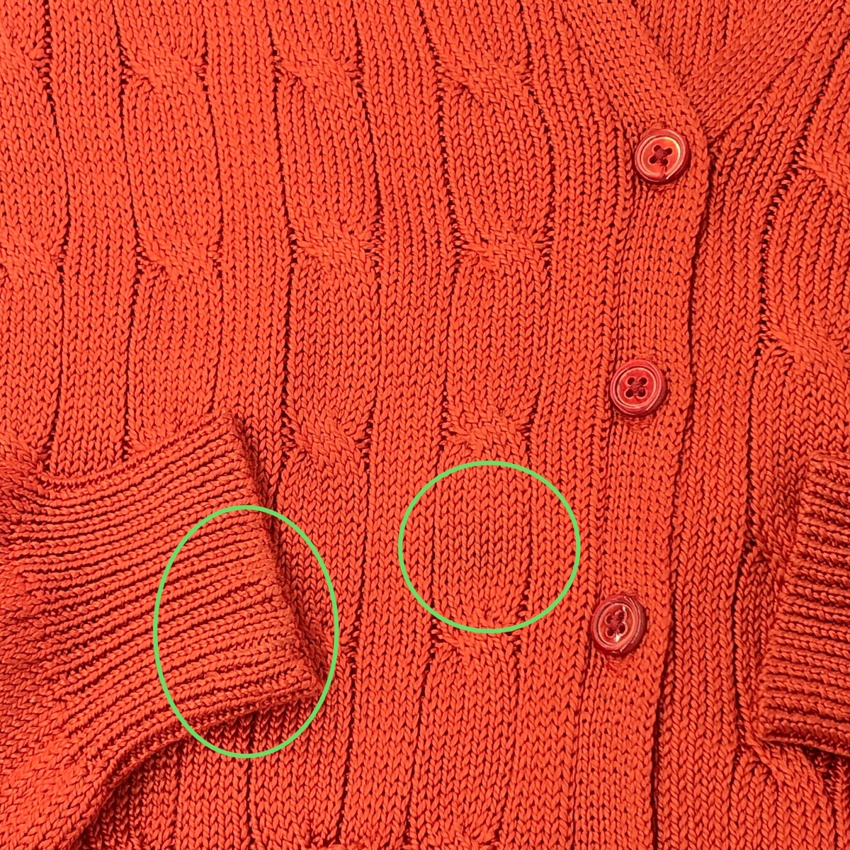 【カーディガン】所々に汚れあり - ※スレ傷や汚れがある場合はその一部分のみ撮影を行っております。 画像に写っていない箇所にも同じようなスレ傷や汚れがある場合がございます。 |