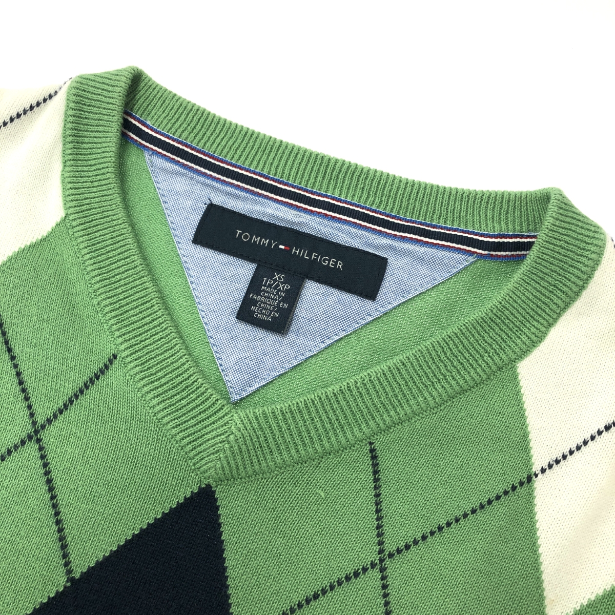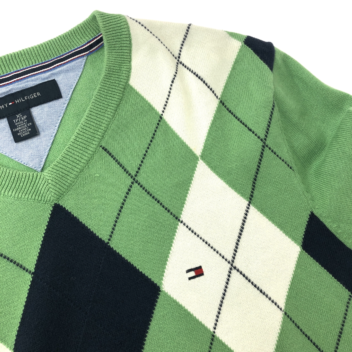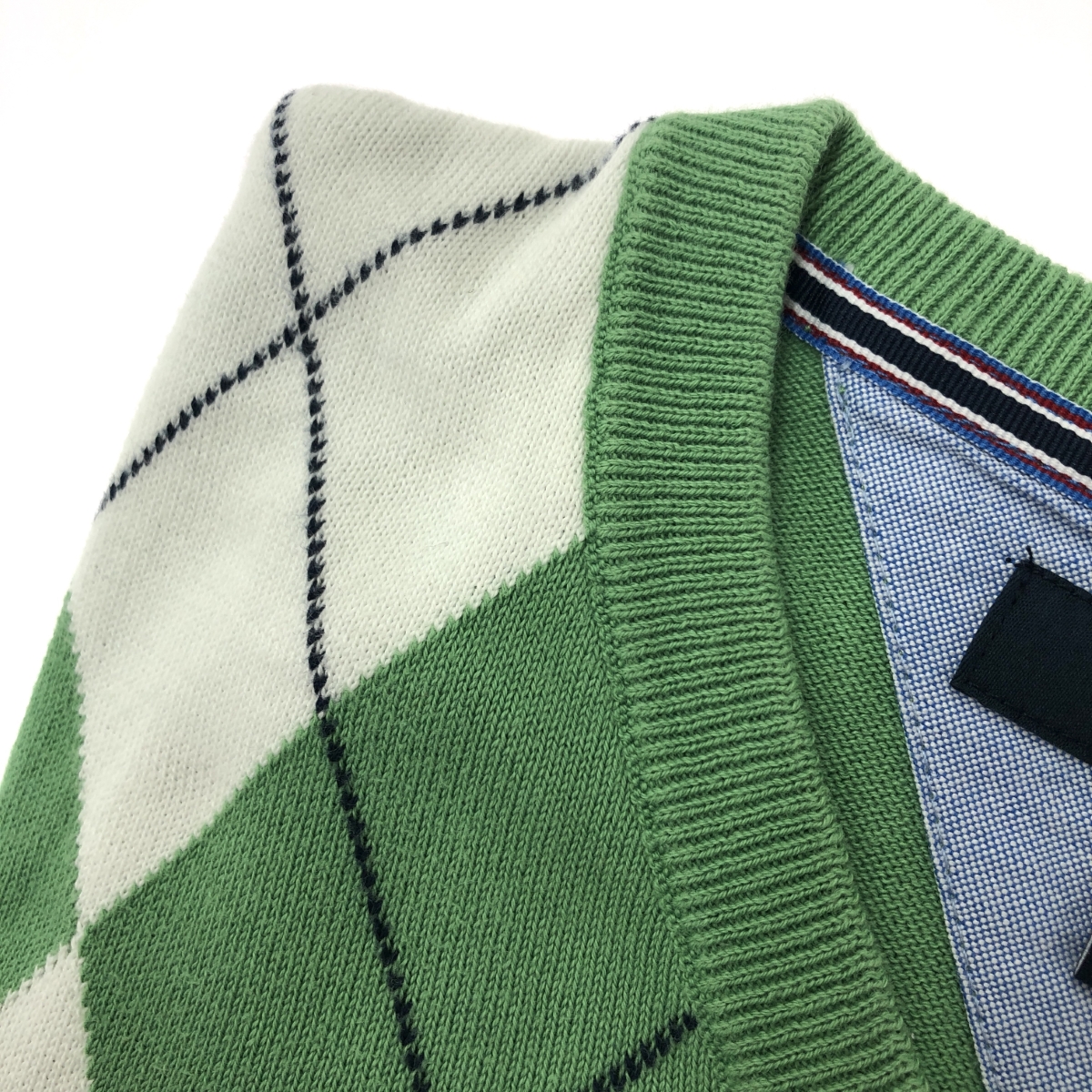 長袖Vネックニット アーガイル/ロゴ刺繍 ※素材は画像の素材タグをご確認ください。 画像にない場合は素材タグが無く素材不明となります。 |