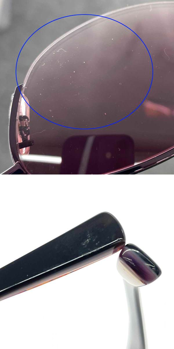 【フレーム】テンプル部わずかに歪み、モダン部擦れ有り- 【レンズ】度なし 小傷有り ※スレ傷や汚れがある場合はその一部分のみ撮影を行っております。 画像に写っていない箇所にも同じようなスレ傷や汚れがある場合がございます。 |