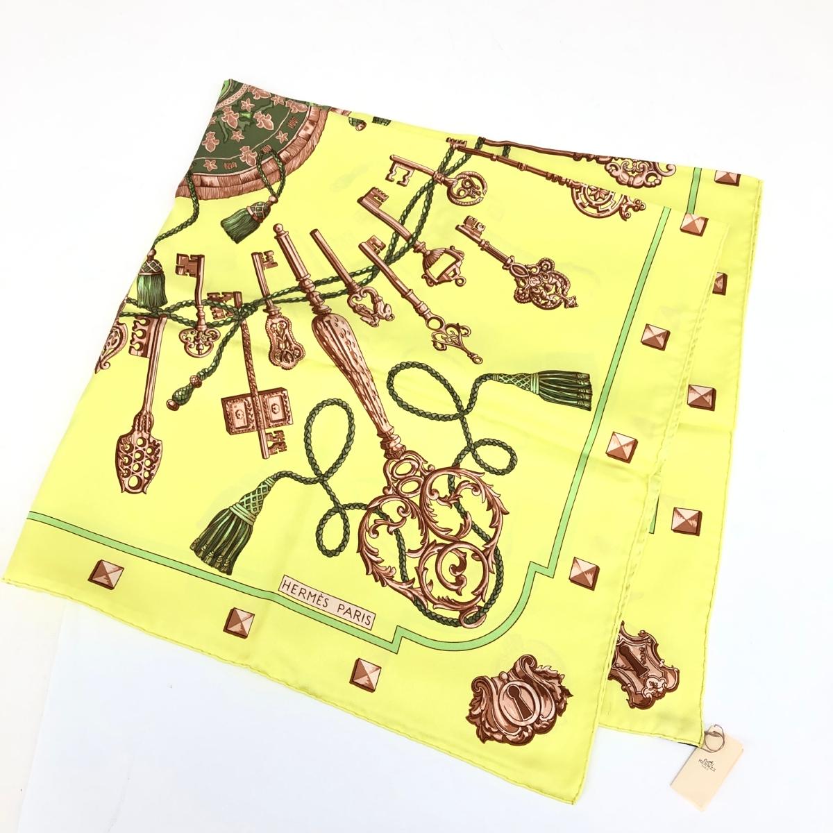 スカーフ カレ90/LES CLES/鍵柄/シルク 絹100% |