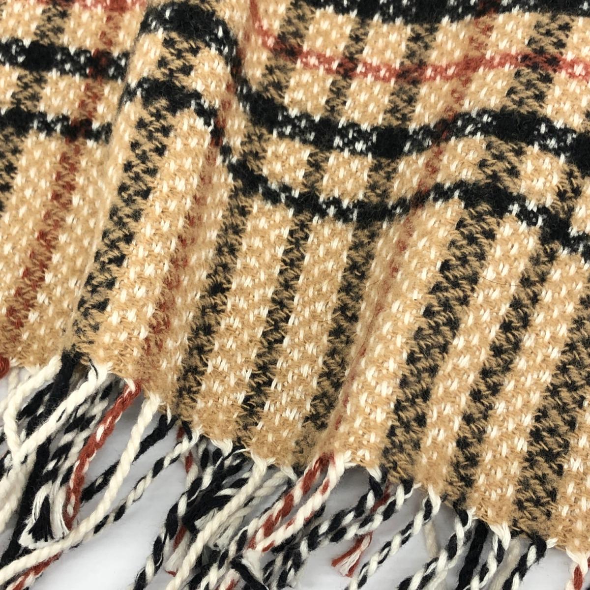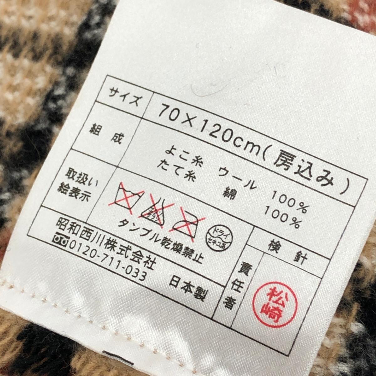 ひざ掛け/ストール ウール×コットン/チェック柄/フリンジ |