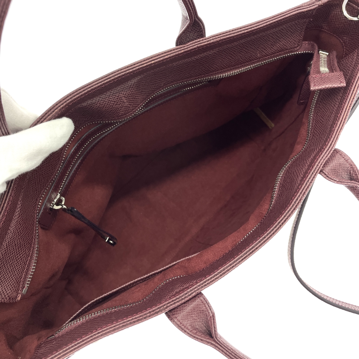 【外側】スレ×若干型崩れ有り- 【内側】 ※スレ傷や汚れがある場合はその一部分のみ撮影を行っております。 画像に写っていない箇所にも同じようなスレ傷や汚れがある場合がございます。 |