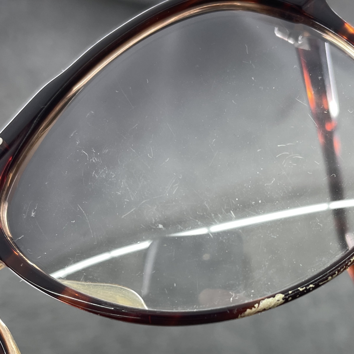 スレ 【フレーム】- 【レンズ】★度あり(度数不明) or 度なし ※スレ傷や汚れがある場合はその一部分のみ撮影を行っております。 画像に写っていない箇所にも同じようなスレ傷や汚れがある場合がございます。 |