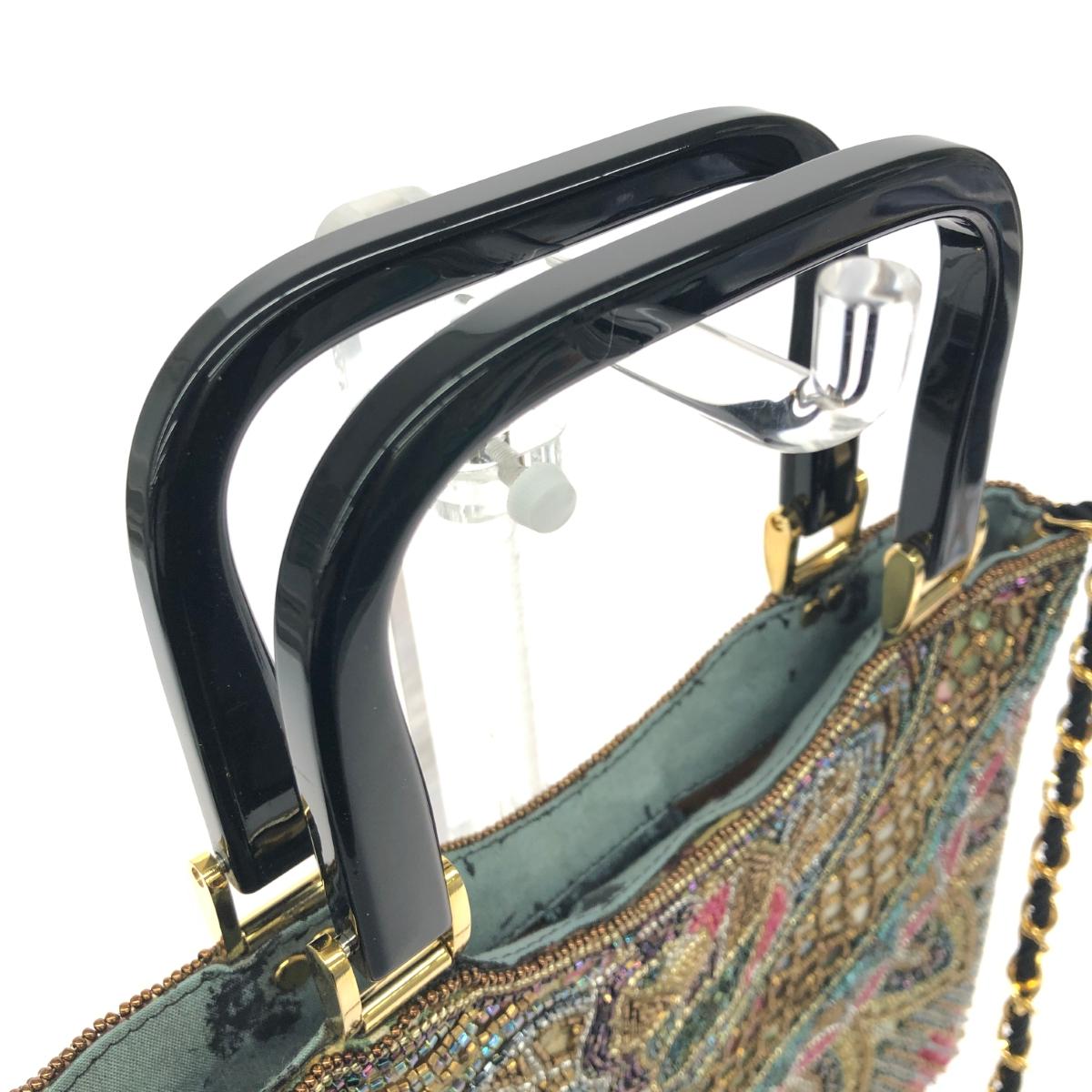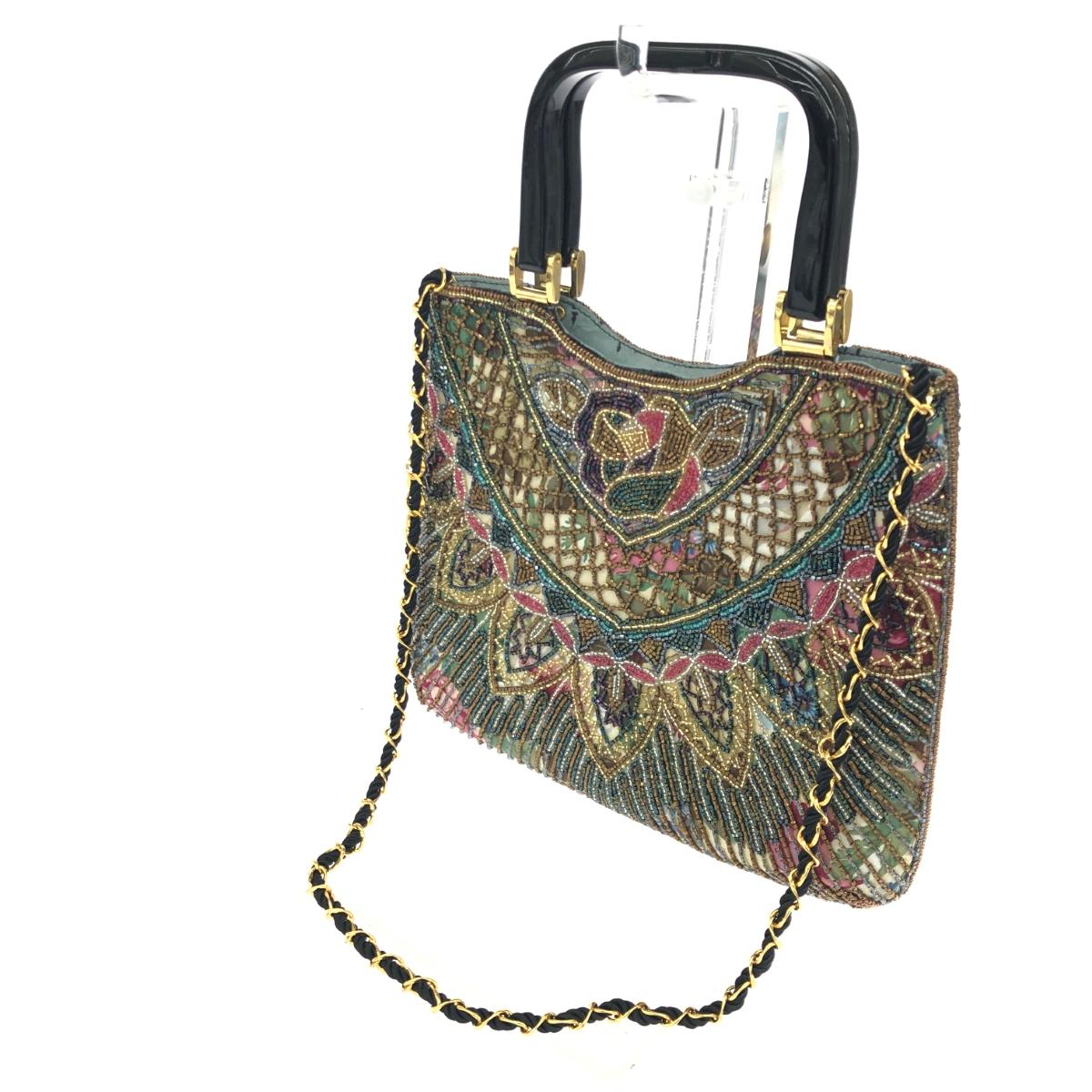 2WAYハンドバッグ チェーン プラハンドル バラ ビーズ刺繍 |