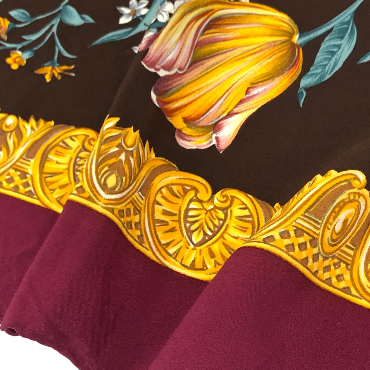 スカーフ 花柄/シルク100% 絹100% |