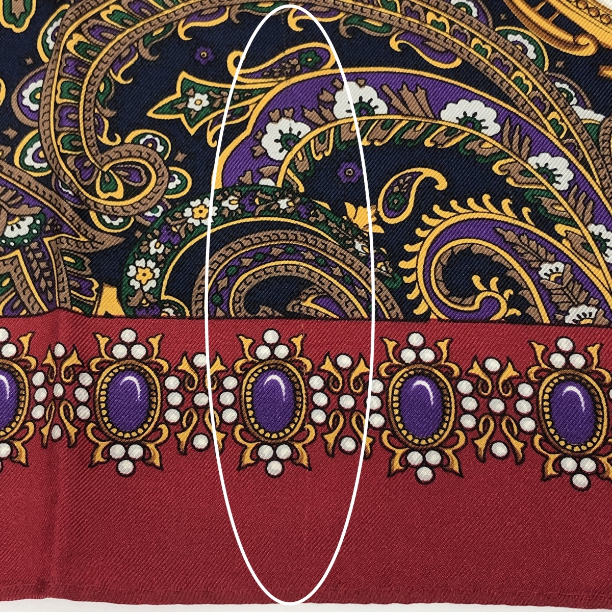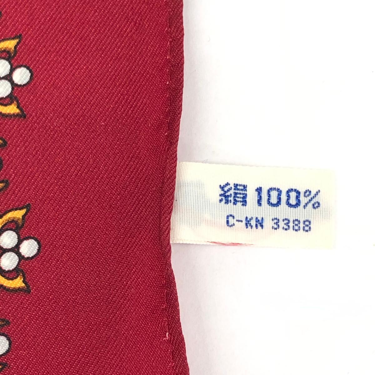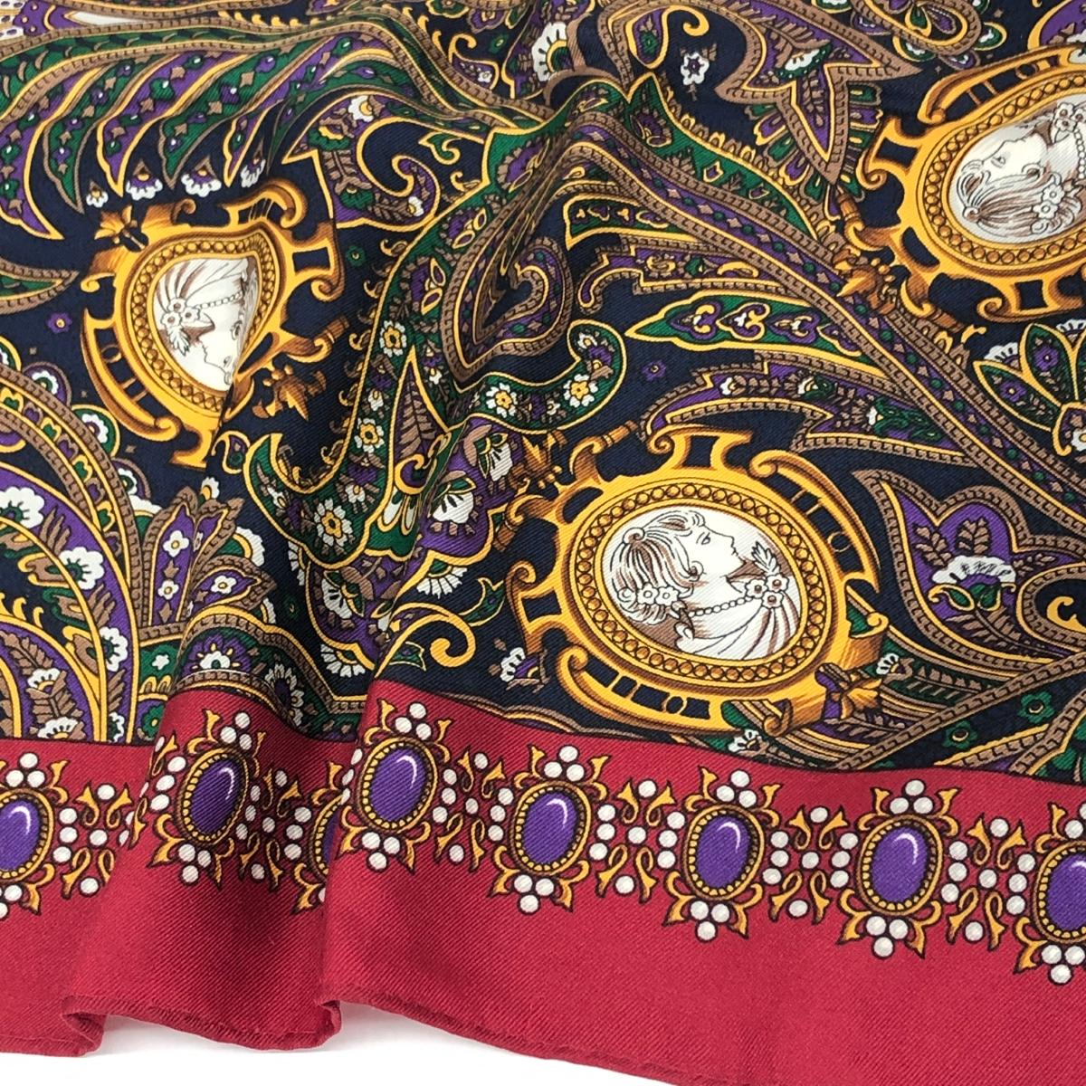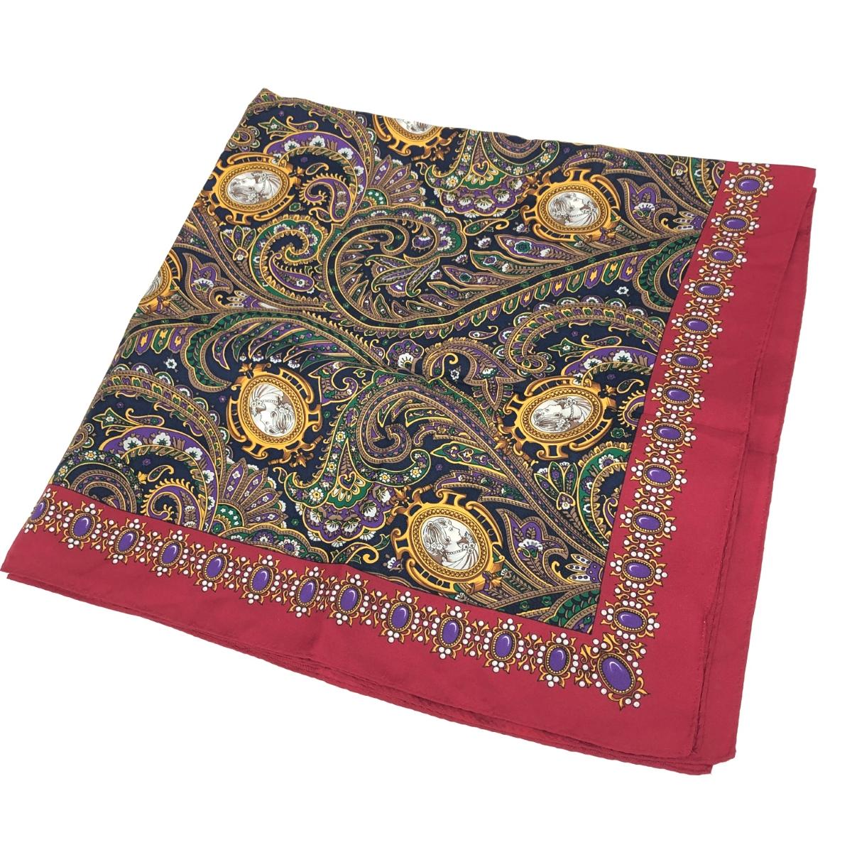 ヴィンテージ柄スカーフ 宝石柄/ペイズリー/カメオ/シルク/ボルドー 絹100% |