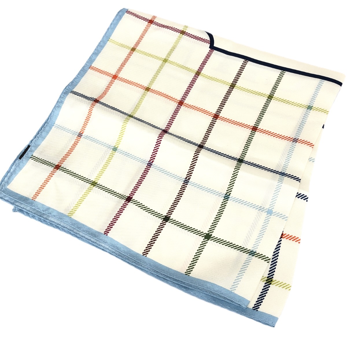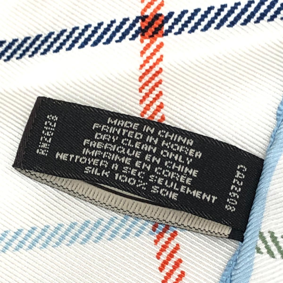 ミニスカーフ ロゴ/チェック/シルク/アイボリー 絹100% |