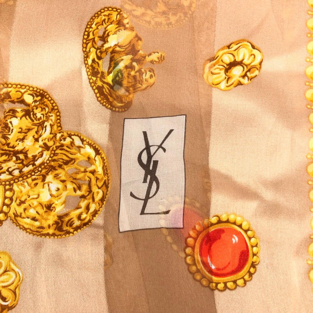 ロングスカーフ YSLロゴ/宝石柄/シルク シルク100% |