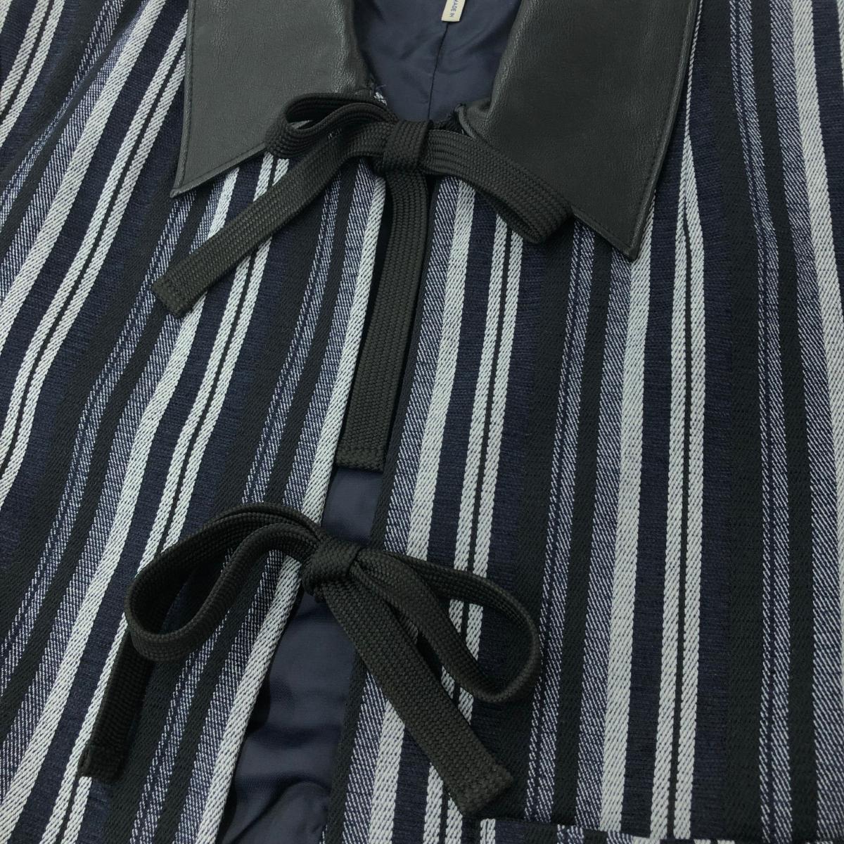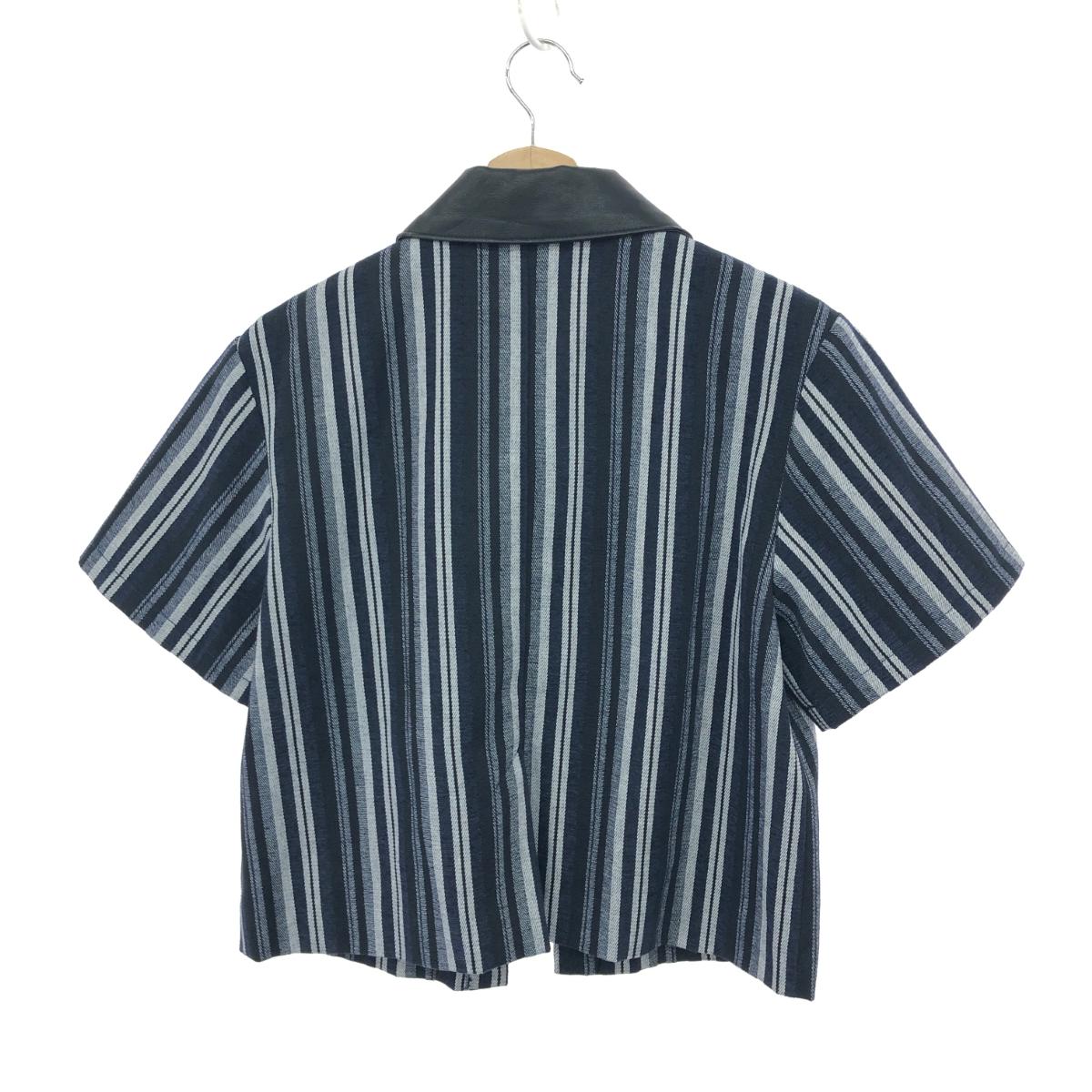 半袖ジャケット ストライプ/襟レザー ※素材は画像の素材タグをご確認ください。 画像にない場合は素材タグが無く素材不明となります。 |