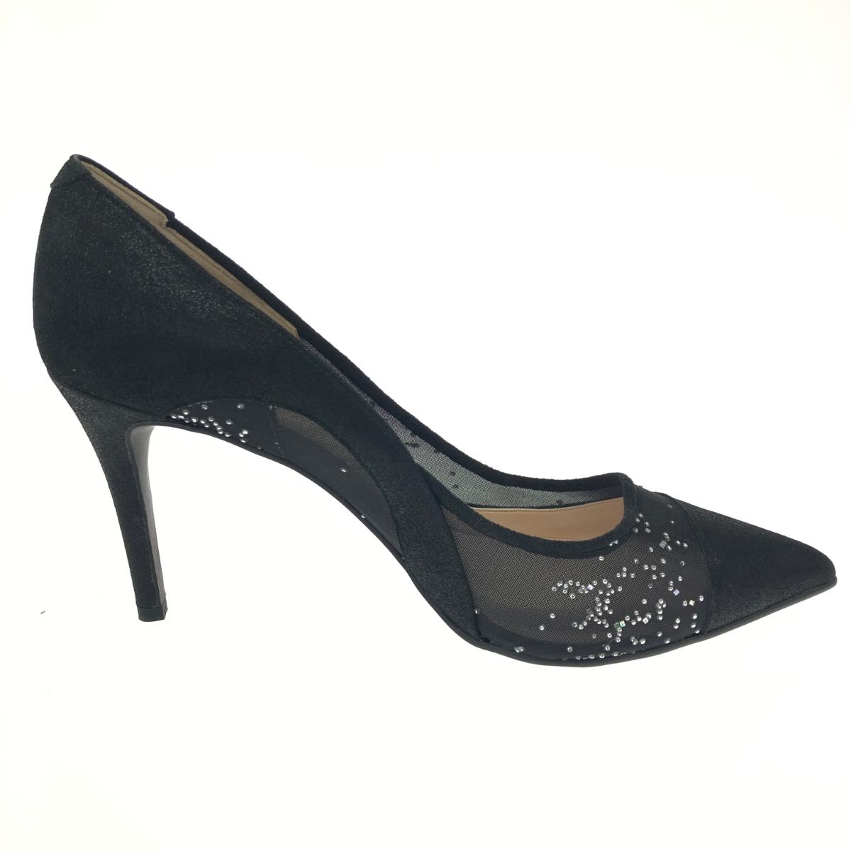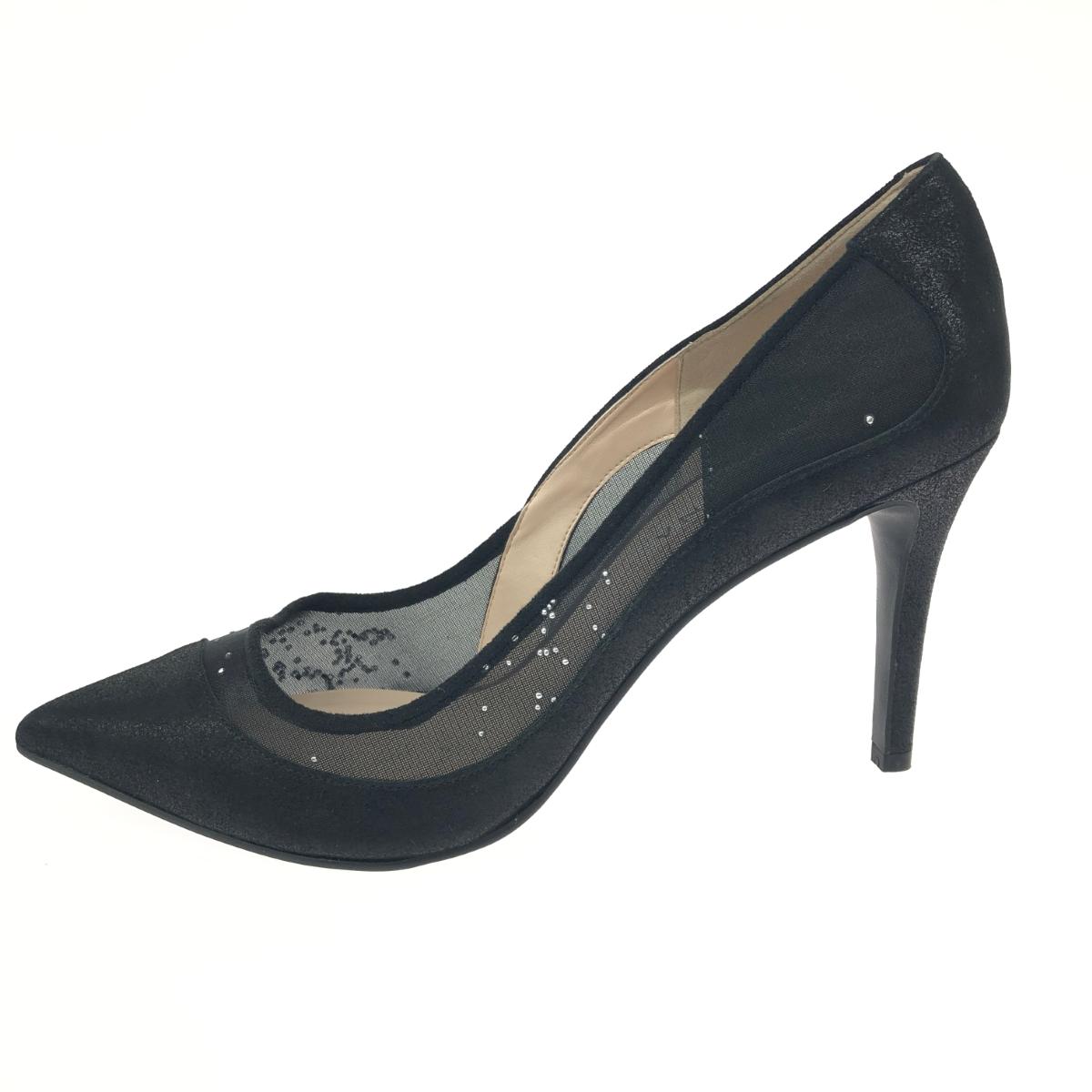 ハイヒールパンプス ビジュー/メッシュ/スエード |