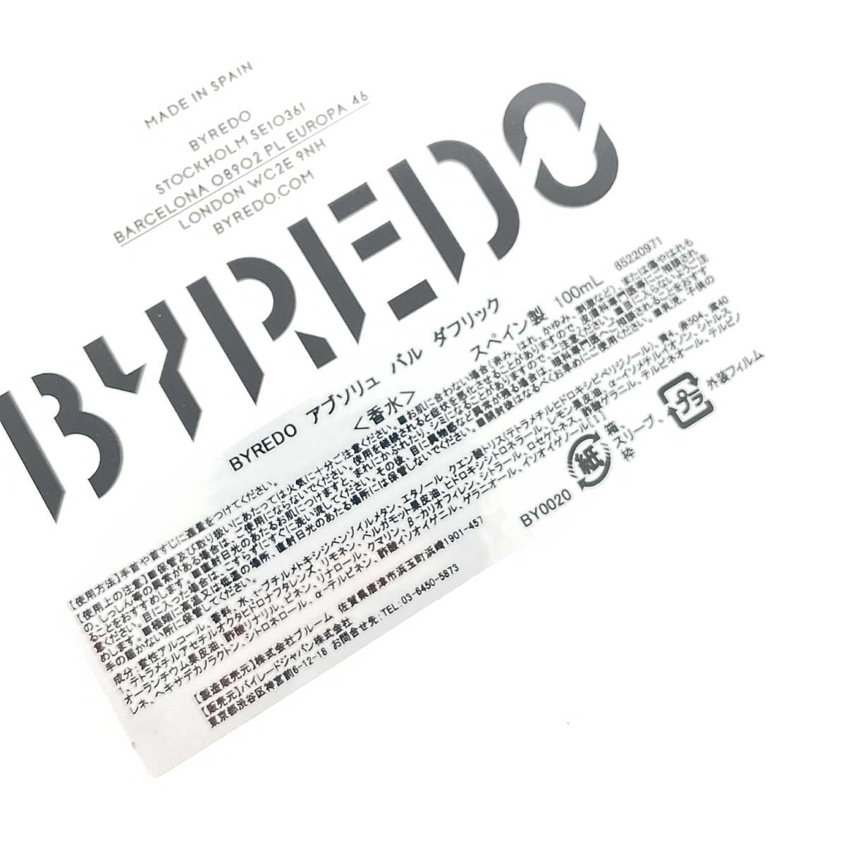 BYREDO バイレード 香水/バルダフリック ユニセックス