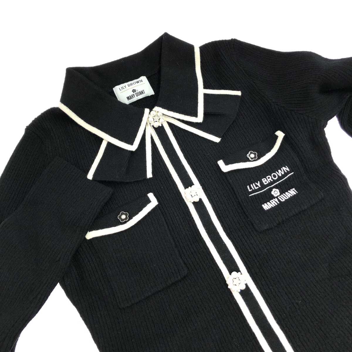 Lily Brown リリーブラウン デイジー釦付きビジューミニニットワンピース