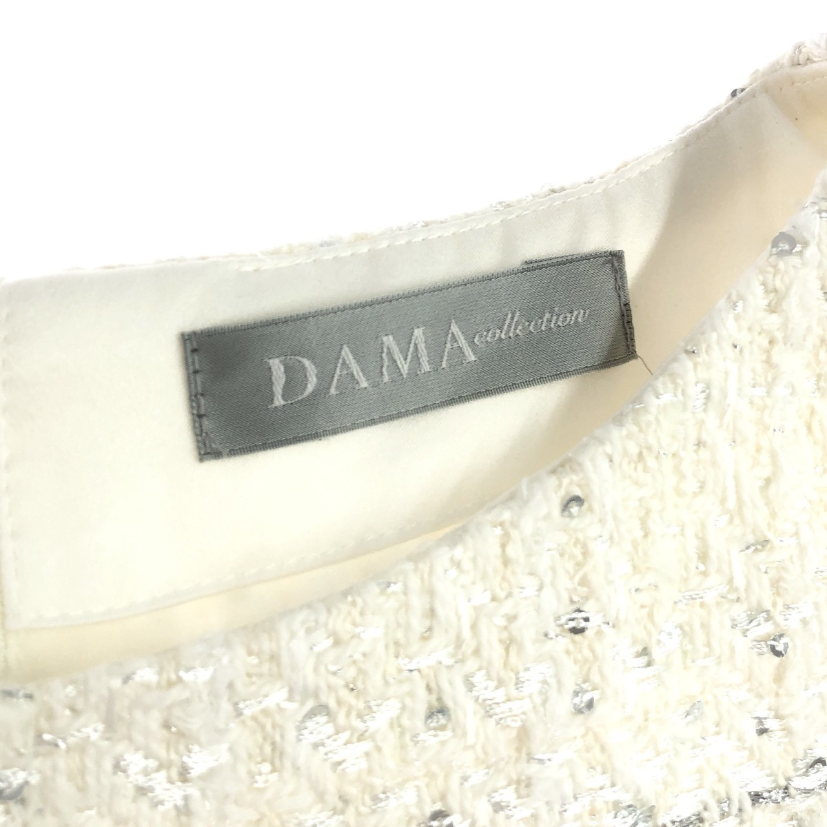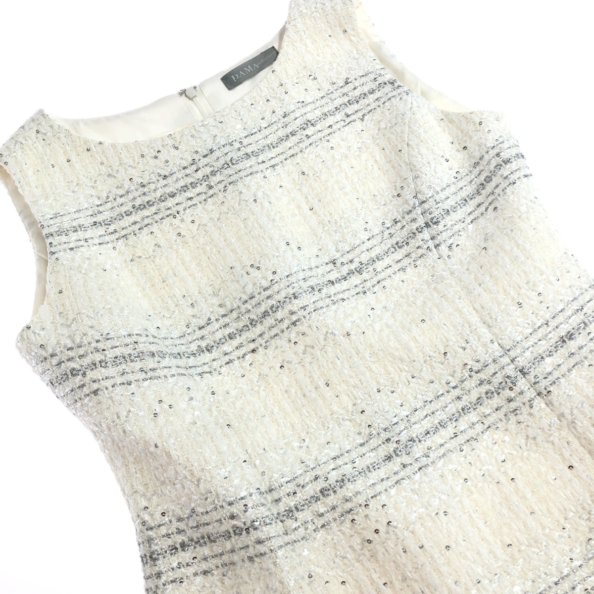 ノースリーブワンピース ツイード/スパンコール ※素材は画像の素材タグをご確認ください。 画像にない場合は素材タグが無く素材不明となります。 |