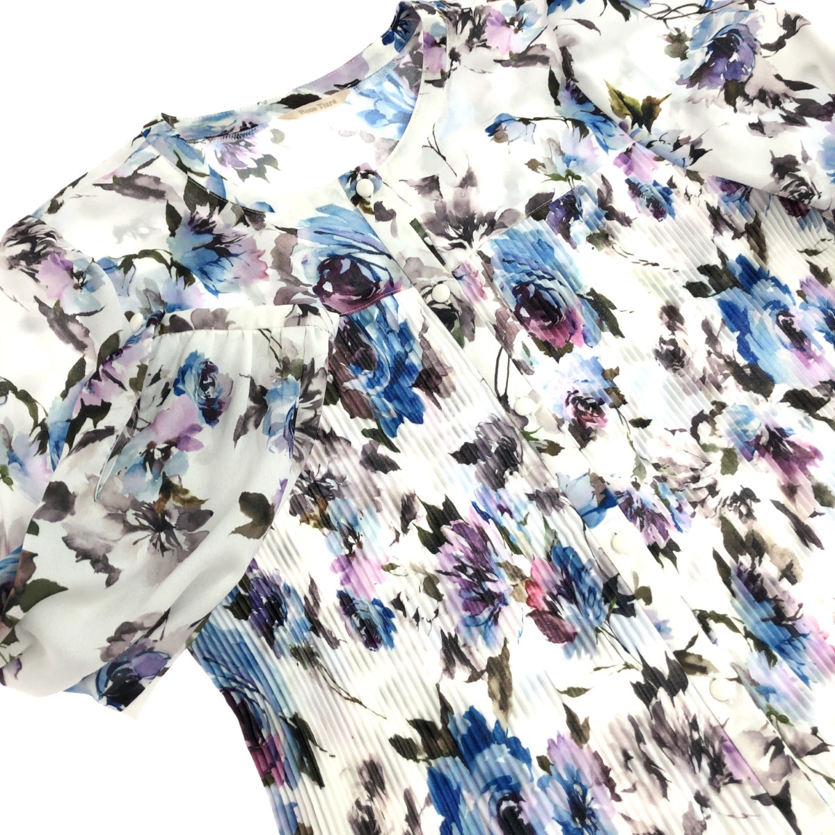 プリーツカラーブラウス ぼかしフラワー/花柄/襟付き ※素材は画像の素材タグをご確認ください。 画像にない場合は素材タグが無く素材不明となります。 |