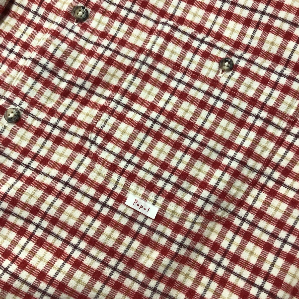 PAPAS パパス 長袖チェックシャツ メンズ