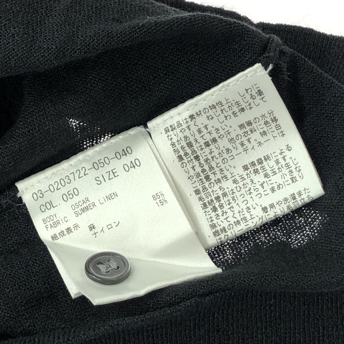 長袖カーディガン ノーカラー/リネン85% ※素材は画像の素材タグをご確認ください。 画像にない場合は素材タグが無く素材不明となります。 |