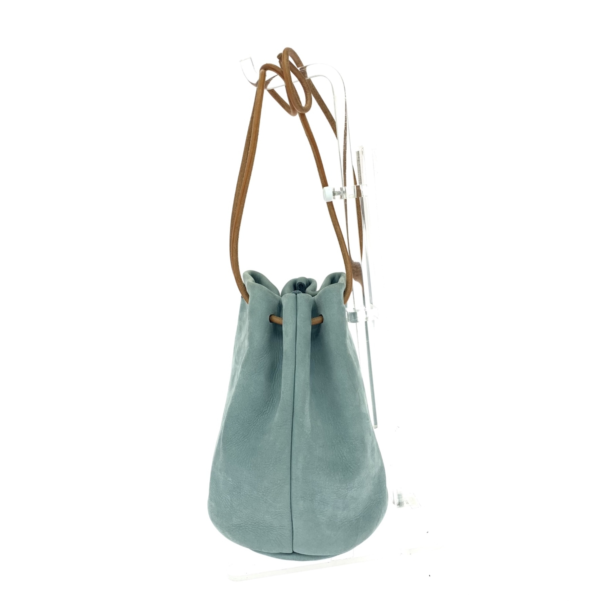 巾着ハンドバッグ ヌバック/ターコイズブルー |