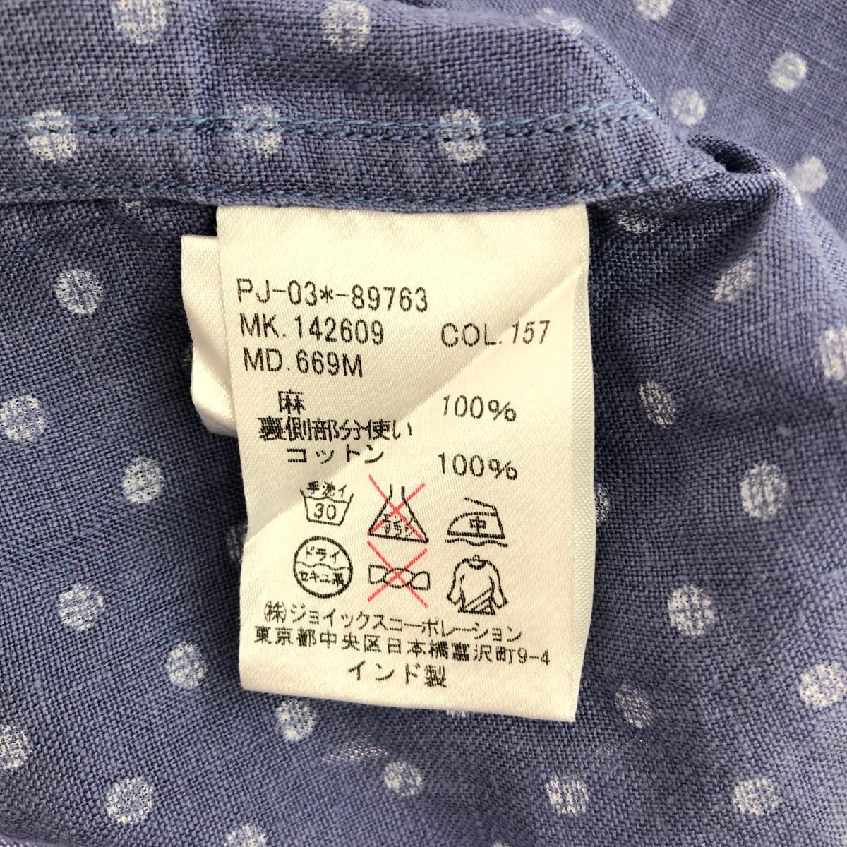 長袖シャツ ドット/リネン100%/ボタンダウン ※素材は画像の素材タグをご確認ください。 画像にない場合は素材タグが無く素材不明となります。 |