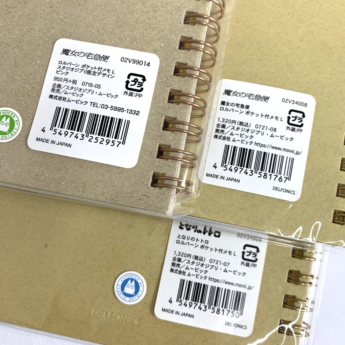 手帳 魔女の宅急便/となりのトトロ ポケット付メモL/ジブリコラボ/三種セット/ |