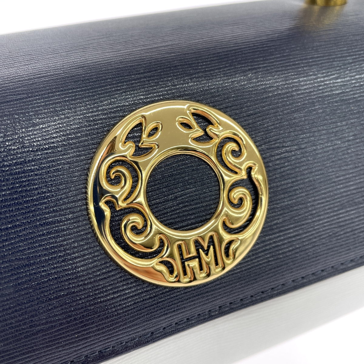 ハンドバッグ ヴィンテージ トップハンドル サークル金具 HMロゴ 筒型 レザー |