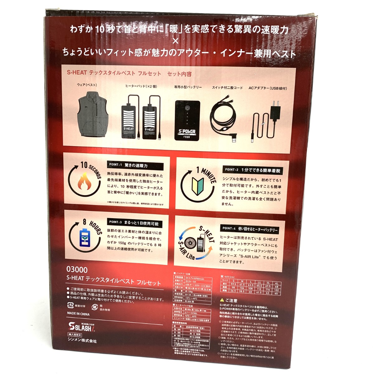 ベスト 03000 S-HEATテックスタイルベストフルセット ※素材は画像の素材タグをご確認ください。 画像にない場合は素材タグが無く素材不明となります。 |