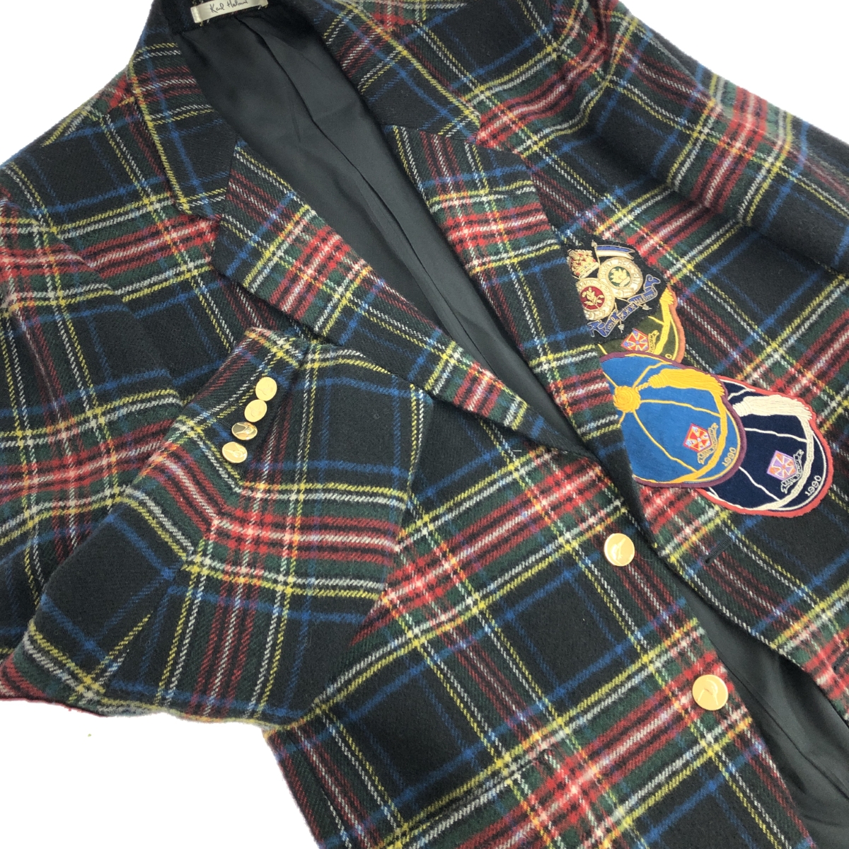 ツイードタータンチェックジャケット ワッペン ※素材は画像の素材タグをご確認ください。 画像にない場合は素材タグが無く素材不明となります。 |