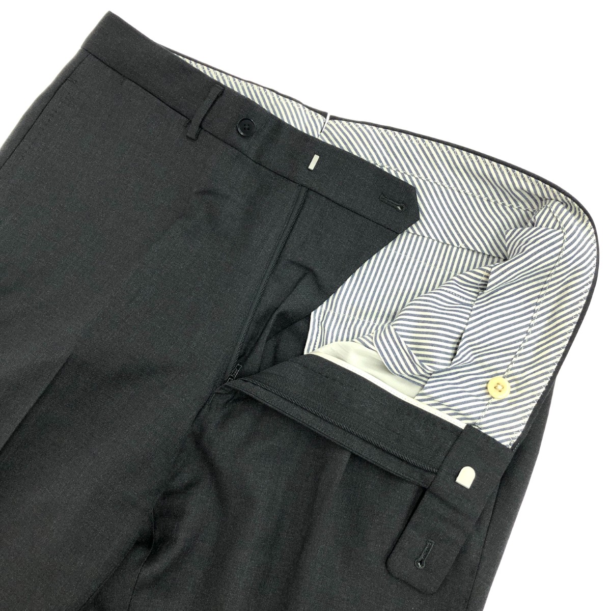 スラックスパンツ CANONICO SP110’s/タック ※素材は画像の素材タグをご確認ください。 画像にない場合は素材タグが無く素材不明となります。 |