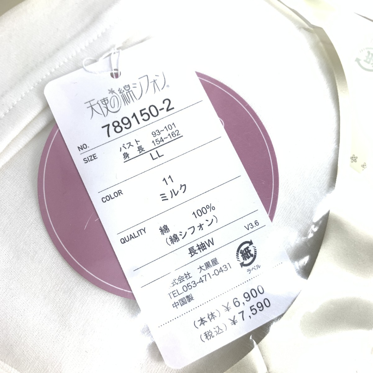 ハイネック長袖 789150-2 2重袖/ミルク ※素材は画像の素材タグをご確認ください。 画像にない場合は素材タグが無く素材不明となります。 |