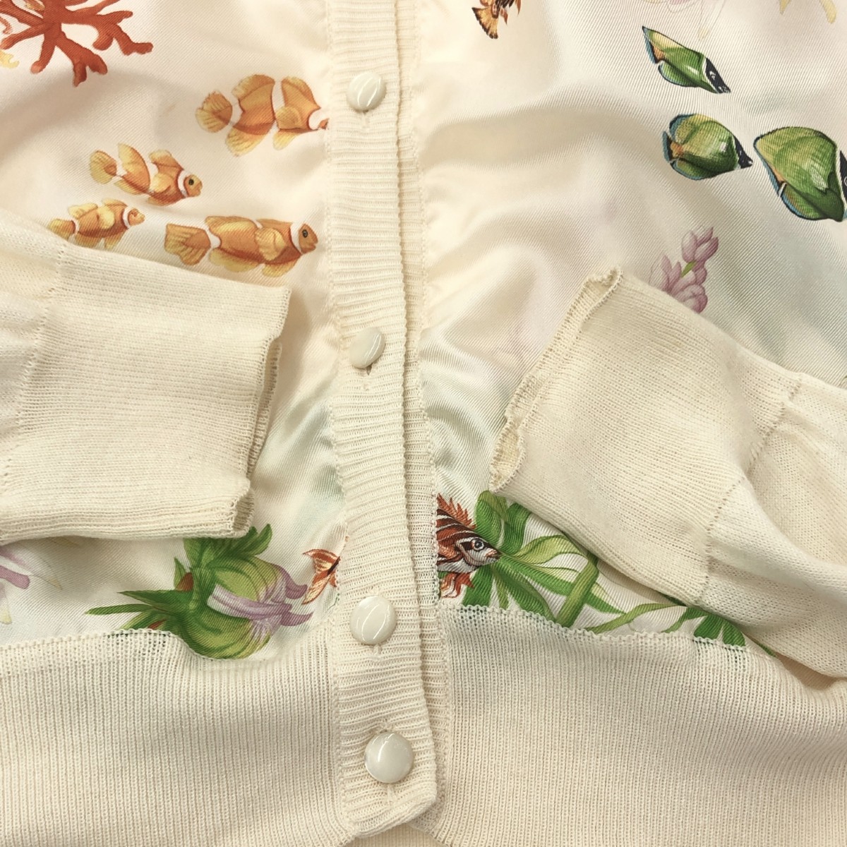 アンサンブルニット コットン×シルク/魚×花柄 ※素材は画像の素材タグをご確認ください。 画像にない場合は素材タグが無く素材不明となります。 |