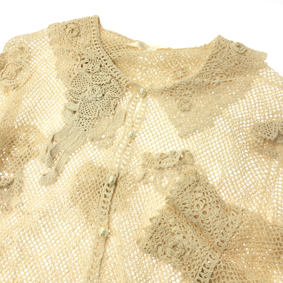 カーディガン パール釦/メッシュ/レース コットン ※素材は画像の素材タグをご確認ください。 画像にない場合は素材タグが無く素材不明となります。 |