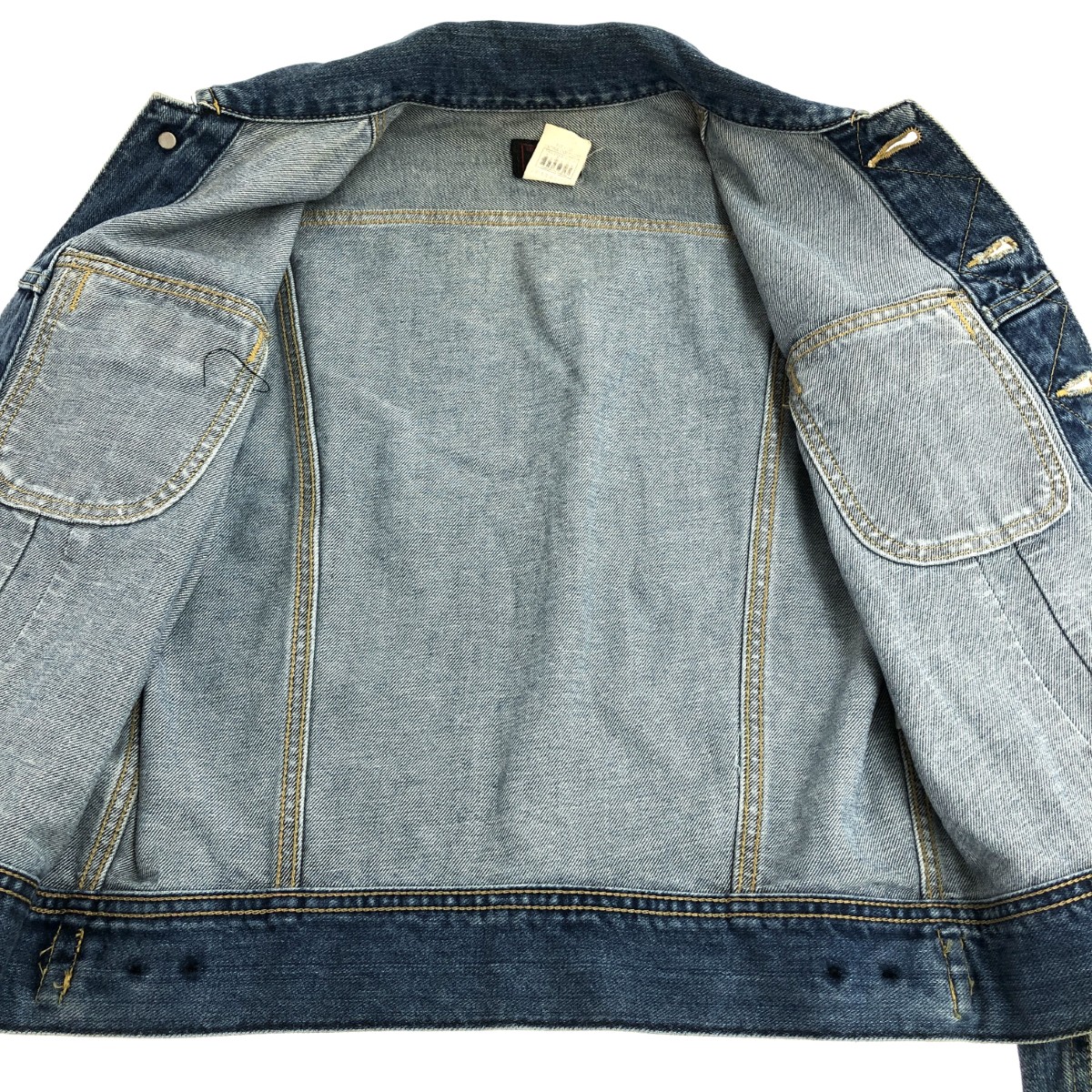 デニムジャケット 0411 赤タグ復刻/90s/日本製 ※素材は画像の素材タグをご確認ください。 画像にない場合は素材タグが無く素材不明となります。 |