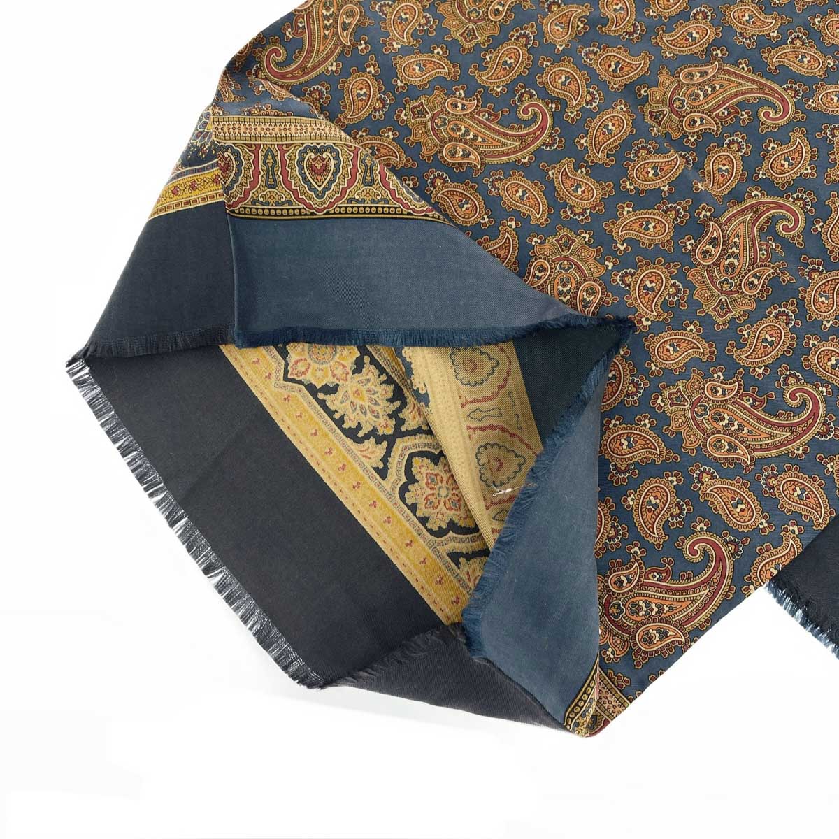 リバーシブルストール ロングスカーフ/ペイズリー/幾何学模様/ シルク100% |